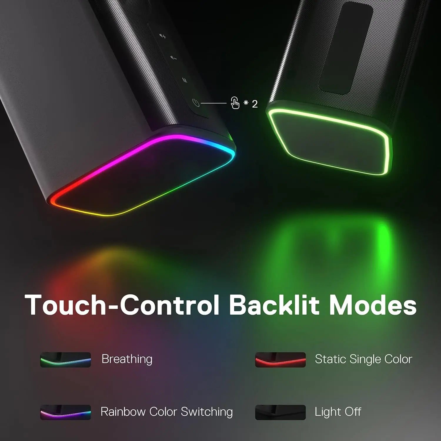 Redragon GS814 Stereo Desktop Speaker, 20W Output, 4 Real Units, BT 5.0/3.5mm AUX, Enhanced Bass, Touch-Control, Dynamic RGB