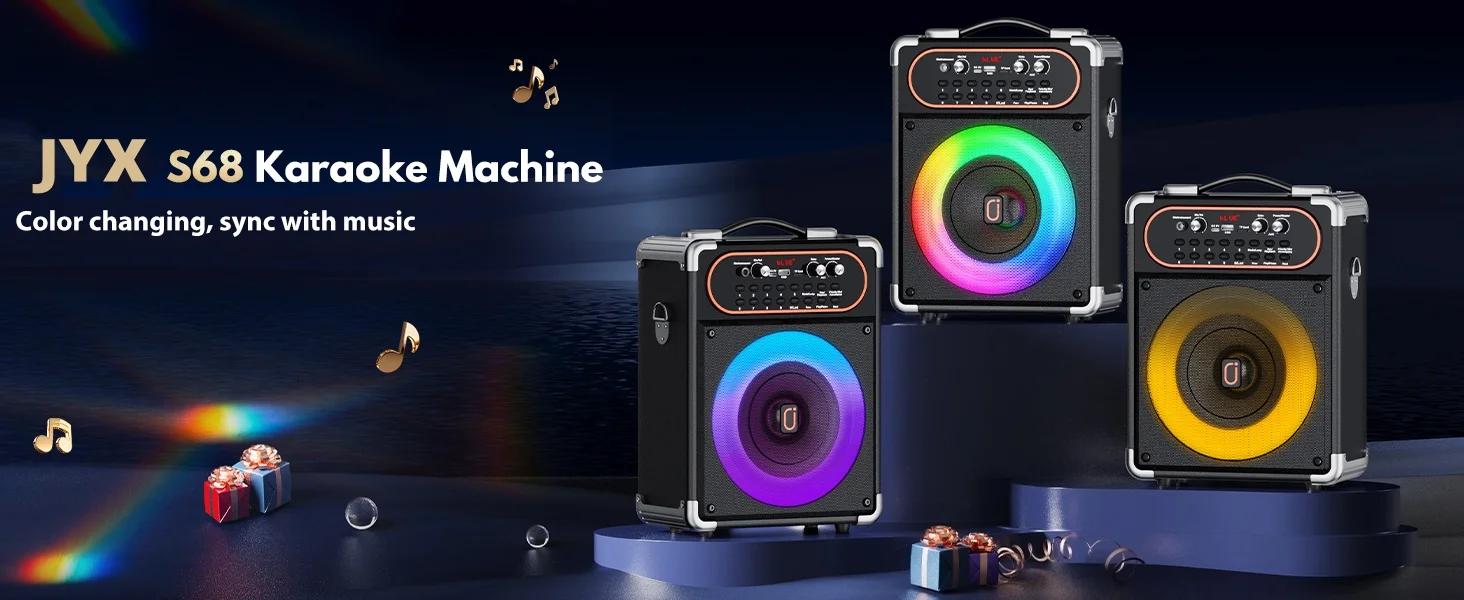S68 Kara Ok with 2 Microphones, Portable Bluetooth 5.3 Kara Ok Speaker,Echo Adjustment, Supports Tv through Auxiliary Connection